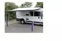 Application : placez l'adaptateur sur la plaque d'ancrage Fix & Go à côté du mât de l'auvent sur le sol, remplissez le tube avec 10 litres d'eau du robinet, de la mer ou d'une rivière et placez ce tube rempli dans le raccord. Fixez le tube Fix&Go au mât de l'auvent à l'aide des attaches Velcro - et le tour est joué ! Avec 20 kg de lest supplémentaire, un tube Fix&Go par mât de l'auvent et vous pouvez utiliser votre auvent même par vent modéré. Avis de non-responsabilité : l'utilisateur final doit toujours déterminer la vitesse du vent en fonction du poids de l'eau, et ne l'utiliser qu'en cas de vent faible ou modéré.