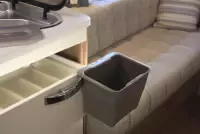 Dit compacte vuilbakje kan je overal in jouw camper of motorhome kwijt! Of het nu in de deur is of ergens aan het aanrecht, het bevestigingspunt is overal voor voorzien en sluit mooit aan. Door het lichtgewicht deksel hebben vliegen of andere beestjes de kans niet om in jouw afval te nestelen.