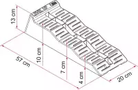De Fiamma Level Up oprijblokken bieden een goede grip dankzij het geribbelde oppervlak. Voorzien van 3 niveau's (4, 7, 10cm) maken ze het oprijden gemakkelijk. Licht in gewicht, maar toch heel sterk (max 5T asgewicht). Steeds per 2 verkocht.